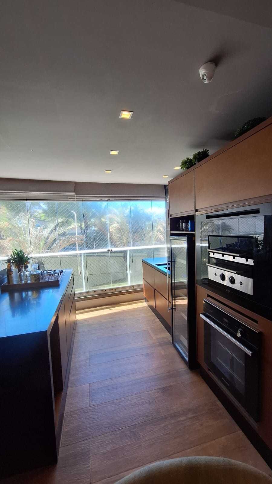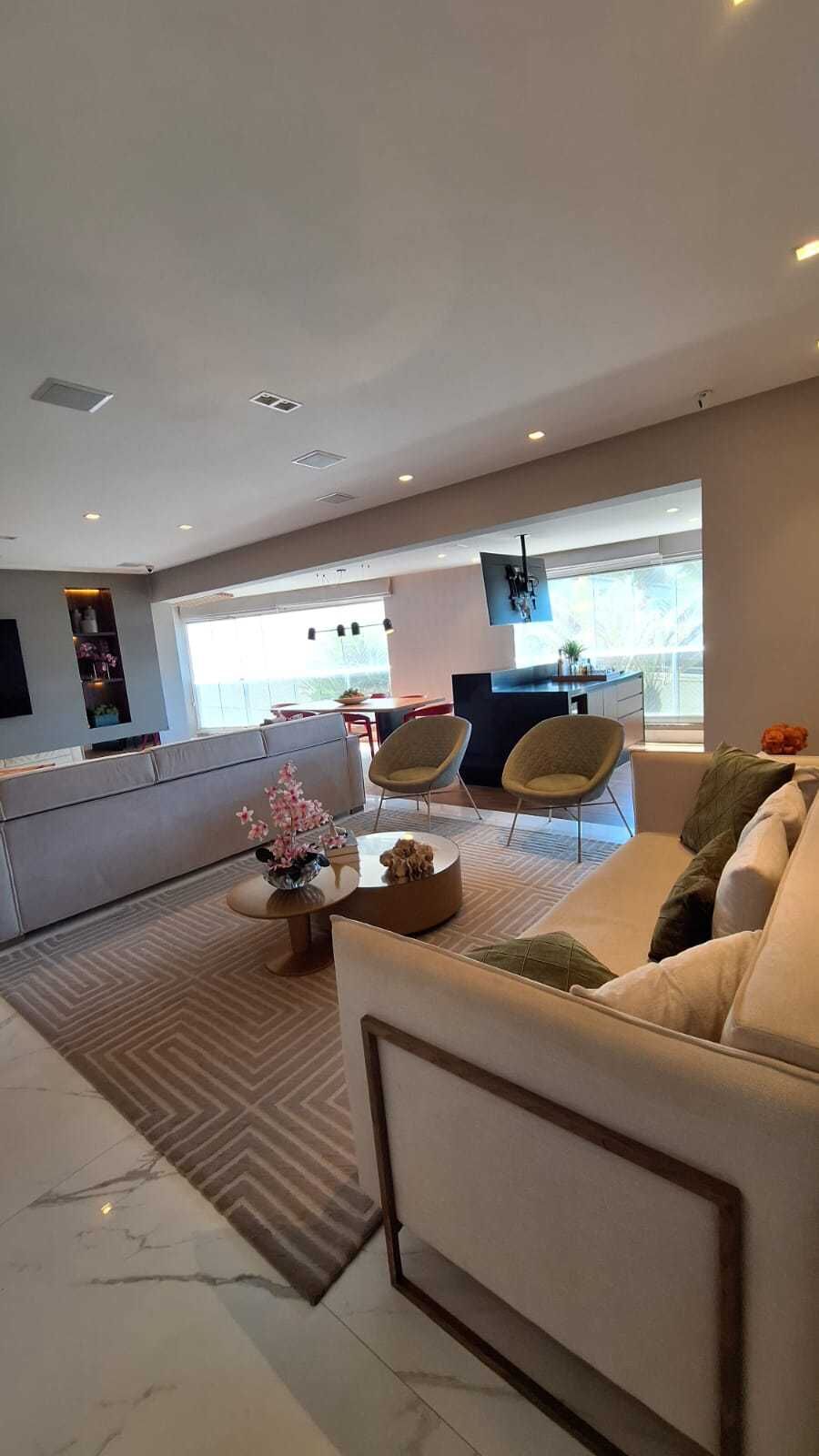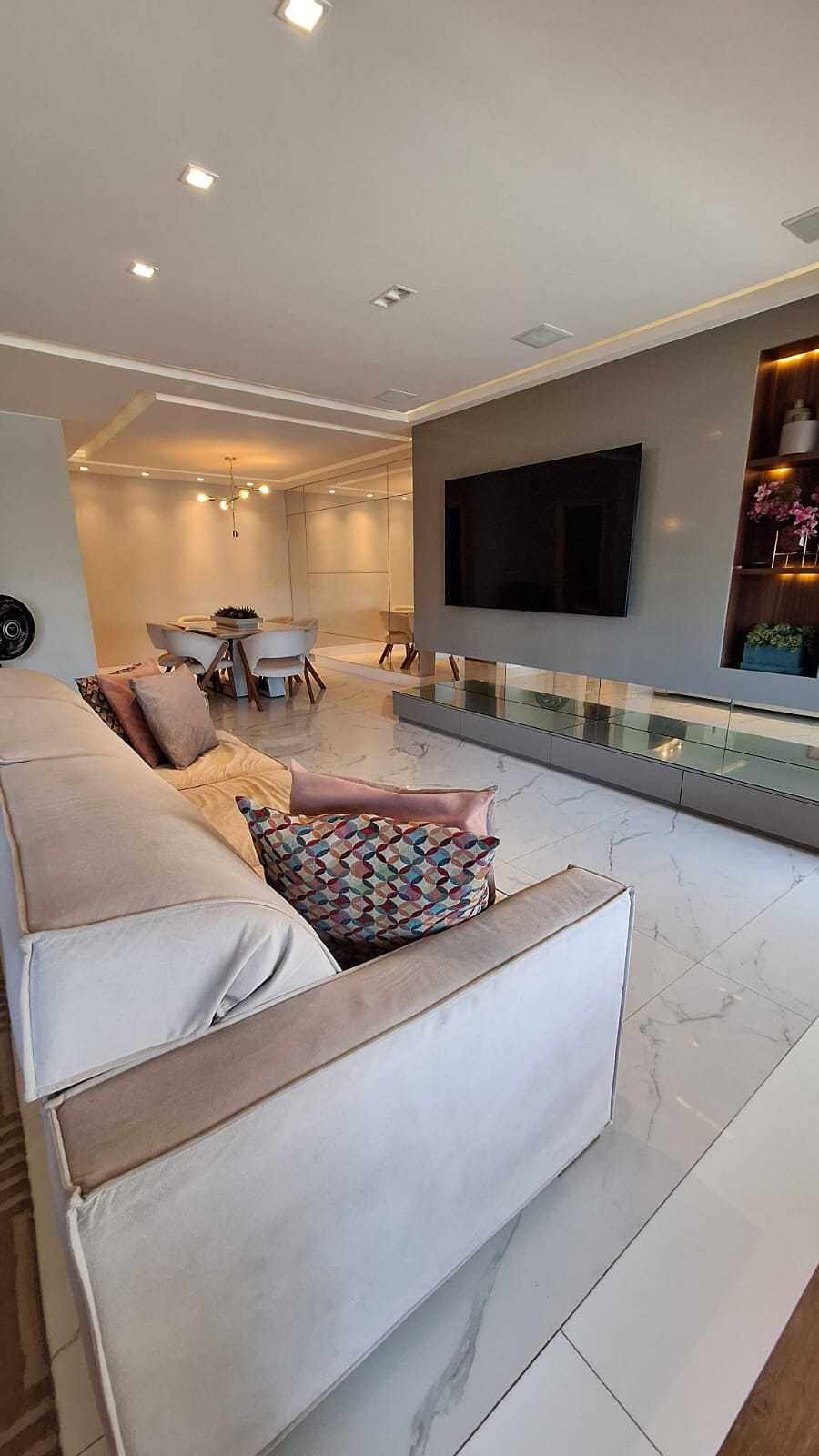 Com quatro quartos, sendo três suítes, incluindo uma suíte master com dois banheiros e closet. A sala é ampla, com teto rebaixado em sanca de gesso, projeto de iluminação em LED e ar condicionado central. A varanda gourmet integrada possui piso em madeira e proporciona um espaço perfeito para receber convidados.